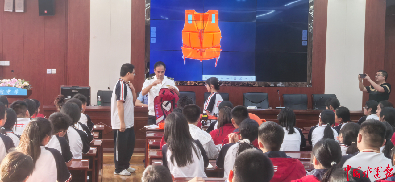 “船在水上有几率产生什么风险?客船遇险怎么逃生求生?对失温的人该怎么正确施救”“遇到离岸流脱离?”“小伙伴意外落水怎么正确施救……”海事的“闪叔叔”结合《泰坦尼克号》《少年派的奇幻漂流》等经典电影和典型事例,视频加互动、理论加模仿演练,教学水上求生、急救、搭船安全等根本安全常识和帆海科普常识,并以贴近生活的事例,浅显易懂地解析水上应急避险技巧,学生们全程高能互动,兴致满满,在沉溺式学习中强化安全认识。