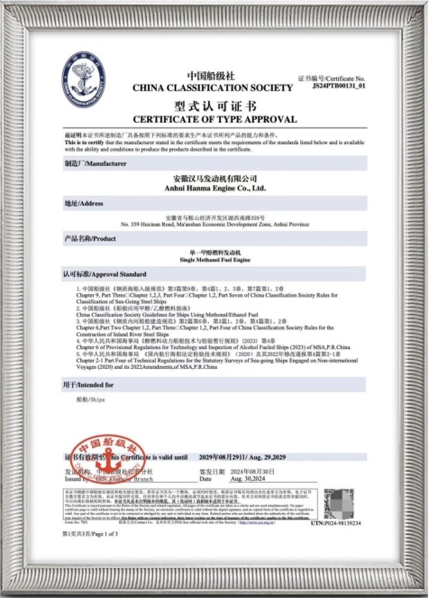 2024年7月8月,《关于加力支撑大规划设备更新和消费品以旧换新的若干办法》《交通运送老旧营运船只作废更新补助细则》连续印发,长途醇氢电动体系作为新动力船只主推动动力,被归入补助范畴,享用置办补助。9月,长途荣获我国首张M100甲醇单燃料船用发动机CCS型式认可证书,标志着长途醇氢电动体系船只处理方案船只范畴取得职业威望认可,加快了甲醇及醇氢电动在船只范畴的推行使用,为航运绿色转型开展供给了有力支撑。