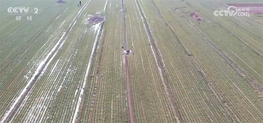 不远处,自走式机也在有序作业。有用压实土壤,削减水分蒸腾,为小麦根系生长发明良好条件。一起,天空中的无人机来回络绎,进行肥料撒播作业。