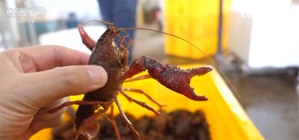 在当地的小龙虾集散中心,工人们正在对收来的小龙虾进行分拣、称重,现场一片繁忙。